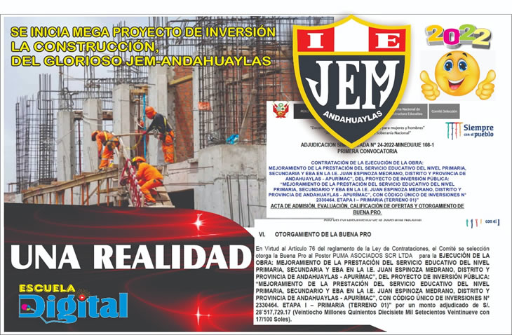 ¡Por Fin…! Se iniciará la construcción del glorioso JEM-ANDAHUAYLAS